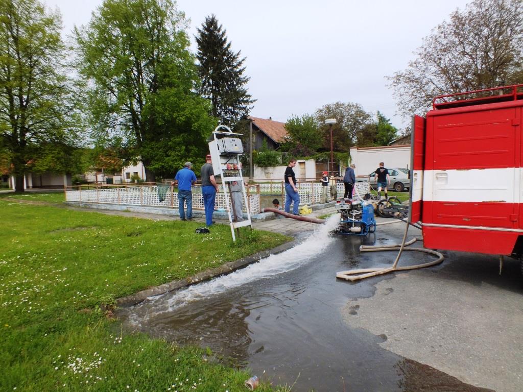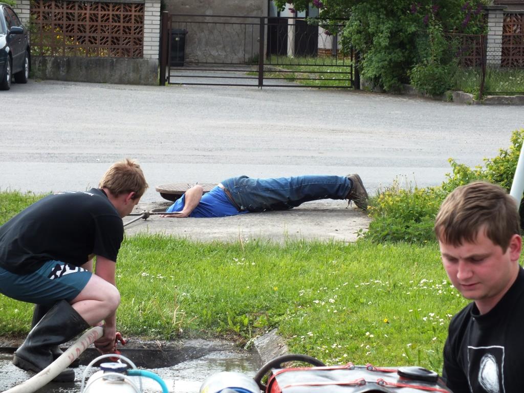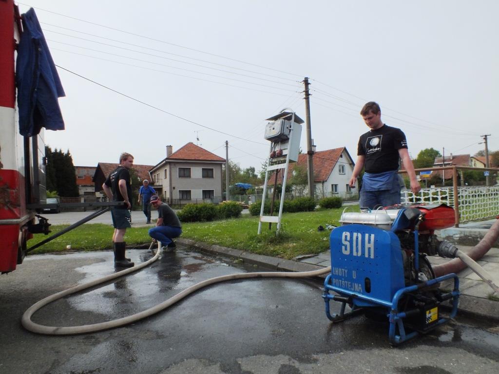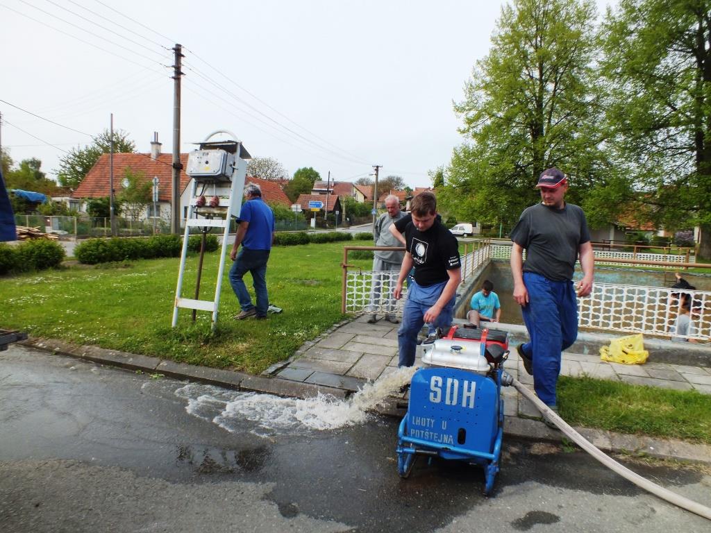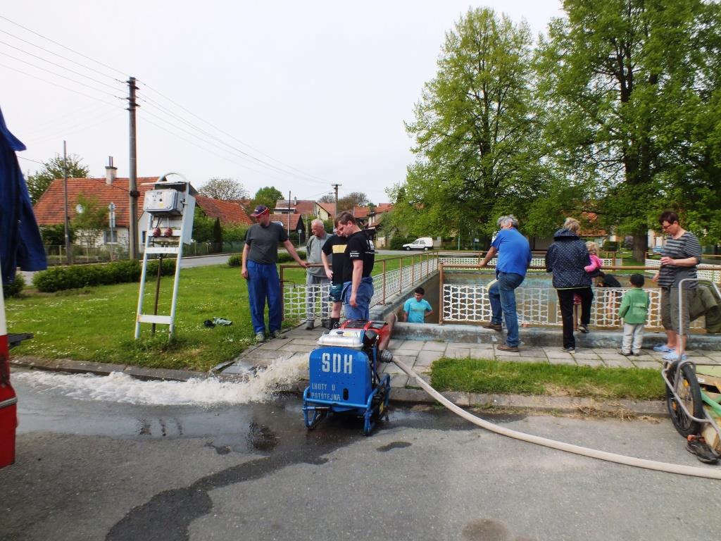V květnu 2015 jsme provedli vyčištění požární nádrže na návsi v Malé Lhotě. Po odpuštění jsme oškrabali stěny a dno od usazených řas, poté jsme je omyli stříkačkou PS-12. Z jímky jsme za pomocí kalového čerpadla následně odčerpali nečistoty, které jsme ředili čistou vodou z hydrantu. Čištění nám zabralo cca 2 hodiny.