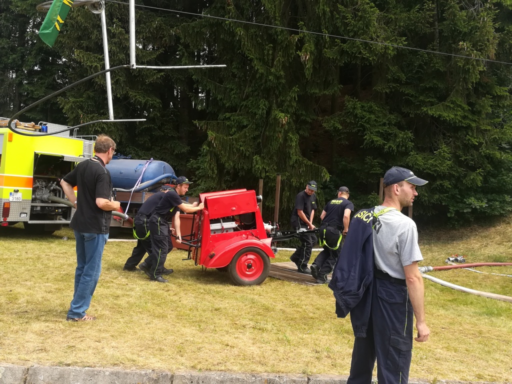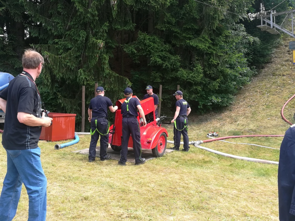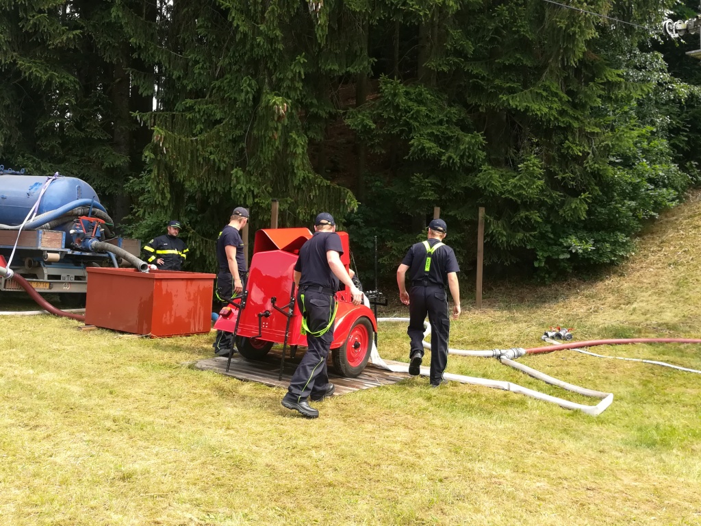 16. června 2018 jsme se s naším Stratílkem zúčastnili 80. oslav od zakoupení motorové stříkačky Stratílek v Písečné. V rámci oslav proběhla rekonstrukce dálkové dopravy vody do místní sjezdovky. S 200 metry vedení a 40 metry převýšení si náš Strátílek hravě poradil, obdobně jako další stroje.